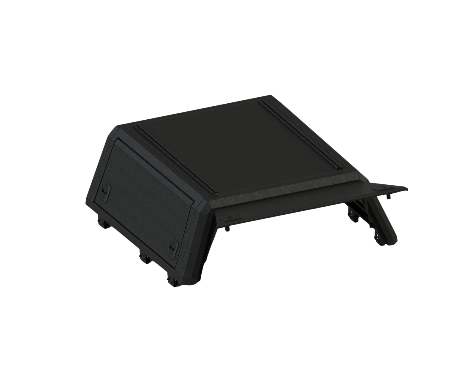 • Funkcjonalne klapy: Hardtop posiada trzy uchylne klapy, każda podnoszona za pomocą siłowników gazowych i zamykana na klucz, co zapewnia łatwy dostęp i bezpieczeństwo przewożonych przedmiotów.