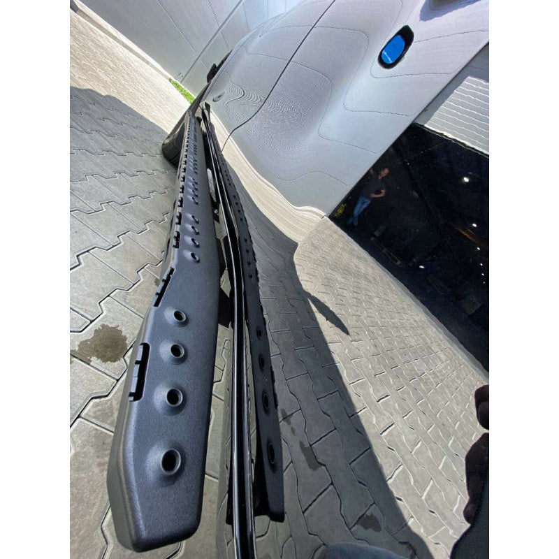 • Nowoczesny wygląd: Standardowe malowanie na czarny matowy kolor RAL 9005 z drobną strukturą dodaje pojazdowi nowoczesnego i eleganckiego wyglądu. Istnieje również możliwość zamówienia progów w dowolnym kolorze z palety RAL, aby idealnie dopasować je do Twojego samochodu.