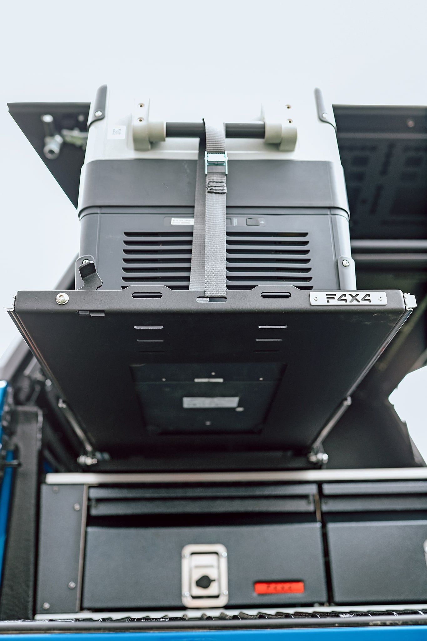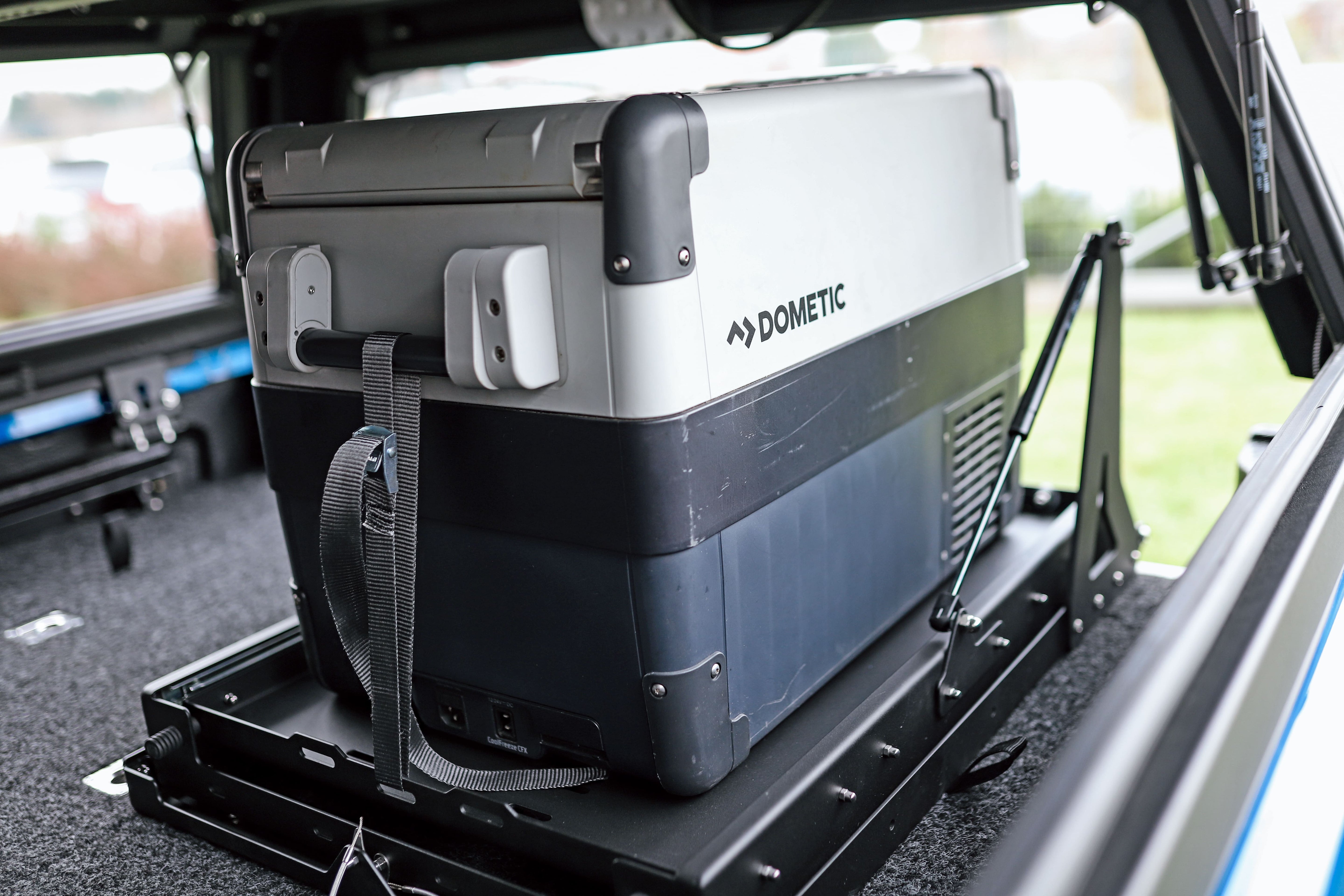 Uchwyt doskonale sprawdzi się w terenowych wyprawach. Dzięki uchylnej szufladzie masz szybki i wygodny dostęp do lodówki, bez konieczności dźwigania ciężkiego sprzętu.