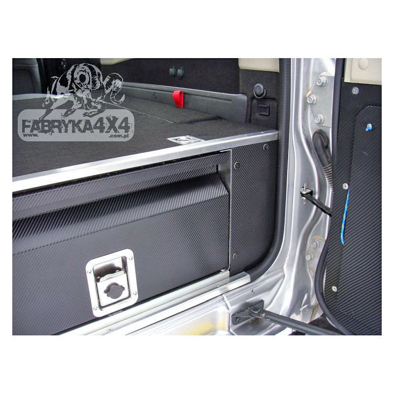- Łatwość montażu: Zabudowa została zaprojektowana z myślą o prostym montażu, który może wykonać samodzielnie jedna osoba, bez naruszania oryginalnego wnętrza bagażnika. Możliwość łatwego demontażu i ponownego montażu zapewnia wszechstronność użytkowania.